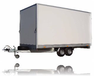Furgon teretna prikolica AP 2000 F sa inercionim i parkirnim kocenjem,namenjena je za prevoz raznovrsnog tereta koji mora biti zasticen od spoljnih uticaja(kise,snega,sunca itd.) nosivosti 1950 kilograma odradjena je kombinovano ,okolni ram od aluminijumskih (elox) autokaroseriskih profila,a oplata je sendvic panela (PVC ili Poliester)obostrano a usendvicu poliuretanska masa od 25-